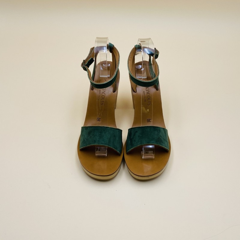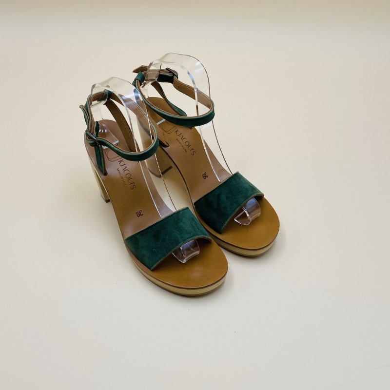 Sandales à talon K.JACQUES, modèle PAPAYE en cuir Velours Lichen, pointure 39.