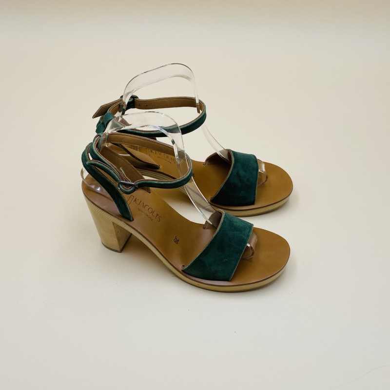 Sandales à talons K.JACQUES, modèle PAPAYE en cuir Velours Lichen , pointure 39.
