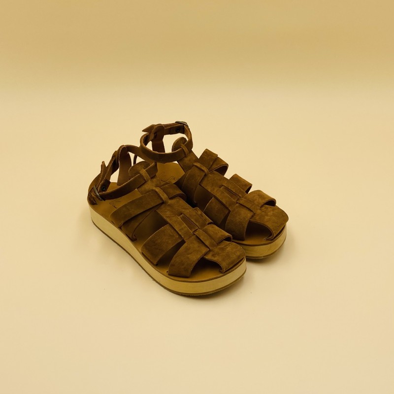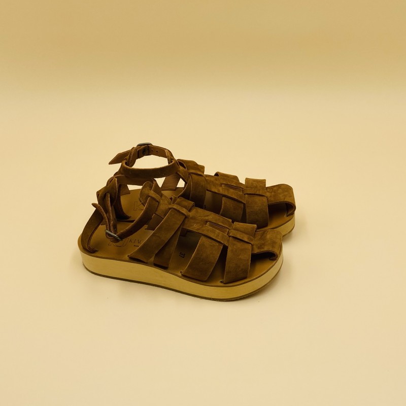 Sandales K.JACQUES, modèle CORMIER en cuir Velours Amaretto, pointure 37