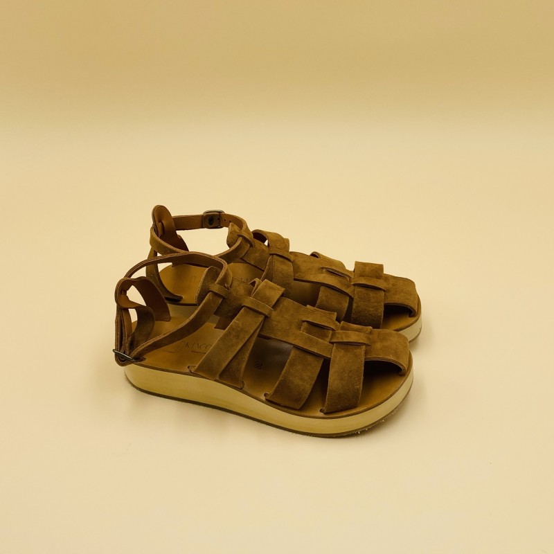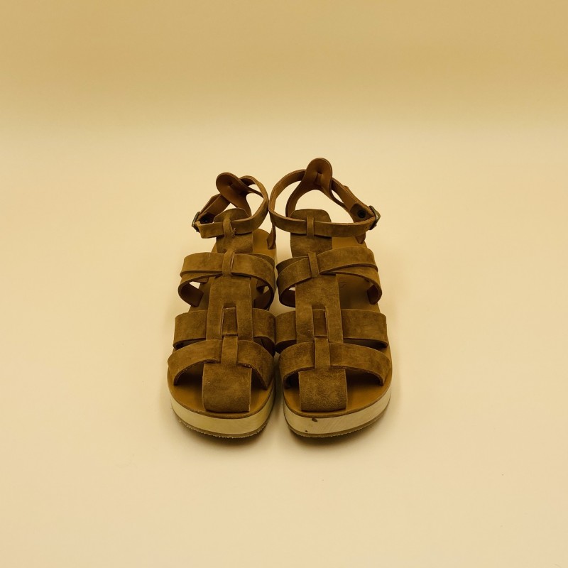 Sandales K.JACQUES, modèle CORMIER en cuir Velours Amaretto, pointure 38.