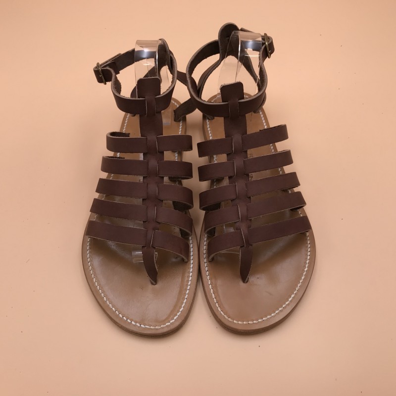 Sandales plates K.JACQUES, modèle DARIUS H en cuir Pul Marron , pointure 44.