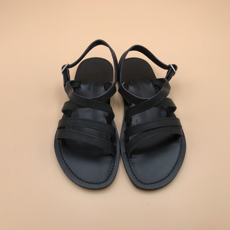 Sandales plates K.JACQUES, modèle HERACLES Ebene H en cuir Pul Noir , pointure 41.