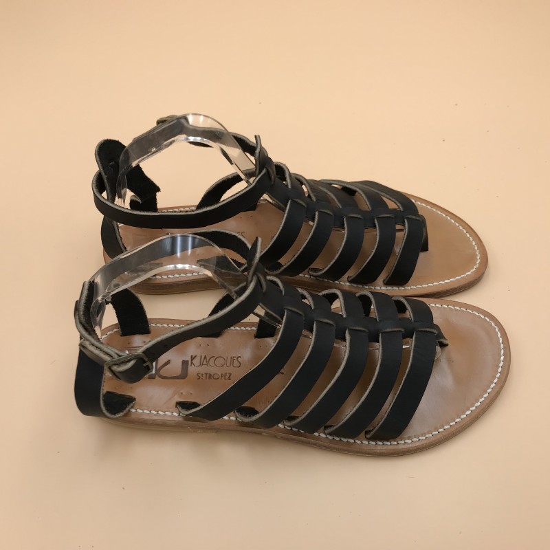 Sandales plates K.JACQUES, modèle DARIUS H en cuir Pul Noir , pointure 44.