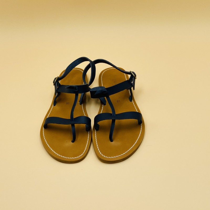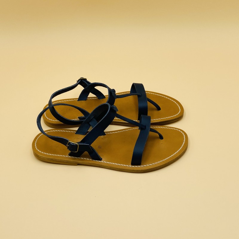 Sandales plates K.JACQUES, modèle VIRGILE pour homme en cuir Pul Océan, pointure 46.