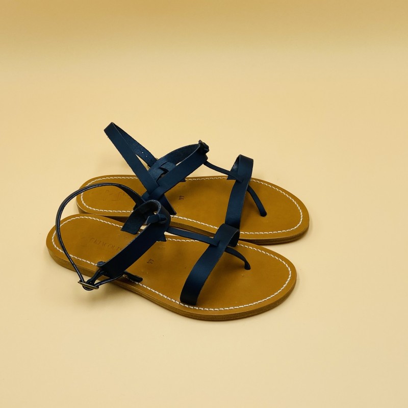 Sandales plates K.JACQUES, modèle Virgile pour homme en cuir Pul Océan, pointure 44.