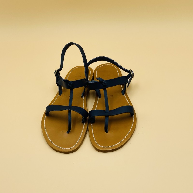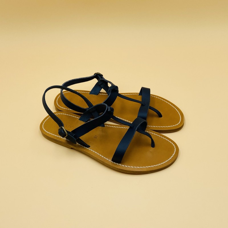 Sandales plates K.JACQUES, modèle VIRGILE pour homme en cuir Pul Océan, pointure 45.