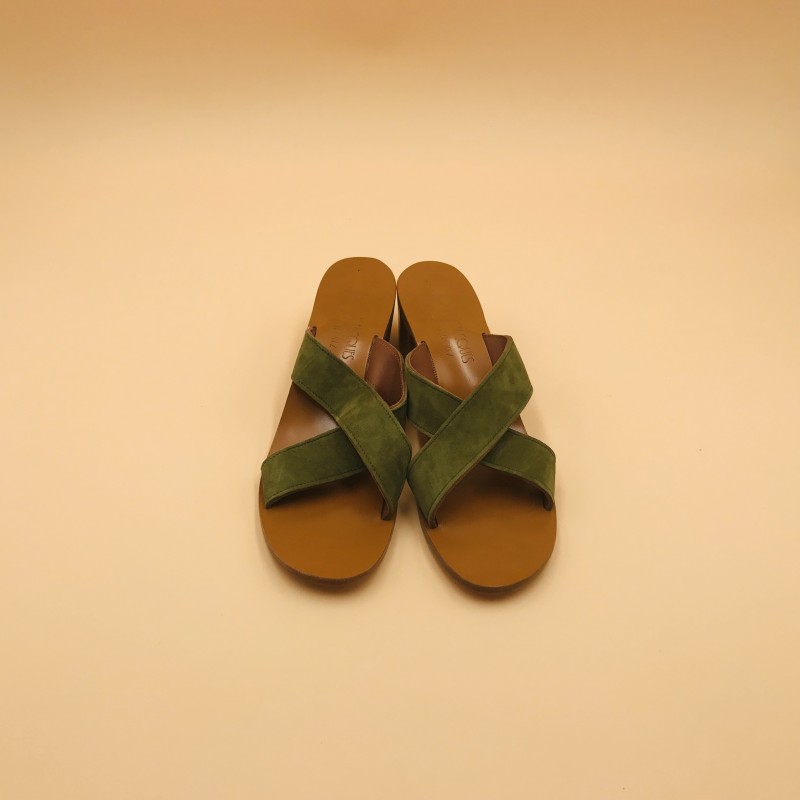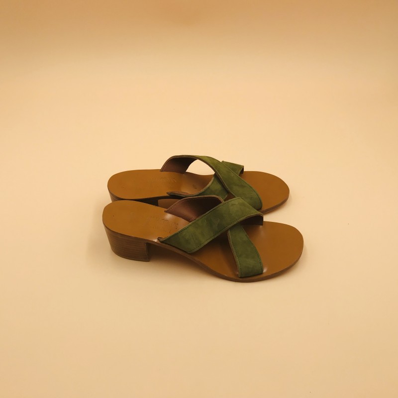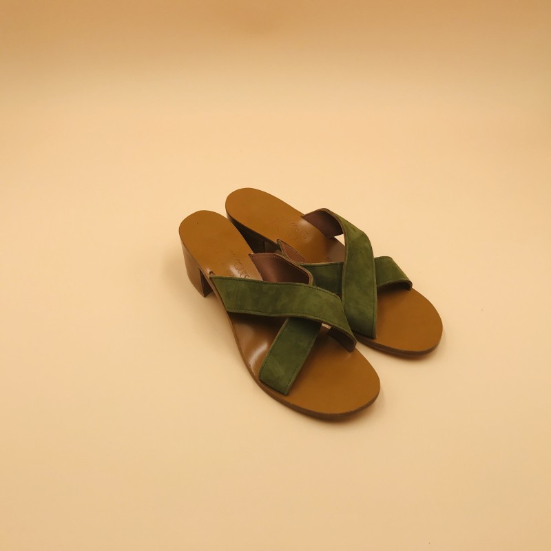 Sandales à talon K.JACQUES, modèle PAVIER en cuir Velours Lichen , pointure 40.