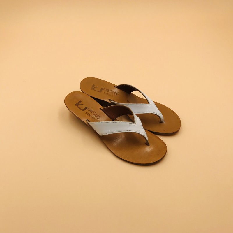 Les sandales K.Jacques sont fabriquées à la main par nos artisans à Saint-Tropez en France. Nos tropéziennes sont composées d'une semelle en cuir et d'un talon en caoutchouc hévéa naturel.