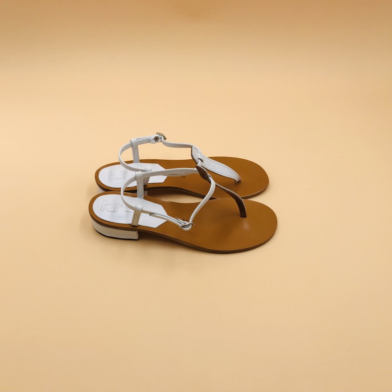 Sandales plates K.JACQUES, modèle PINEDE en cuir ODEON BLANC , pointure 38.