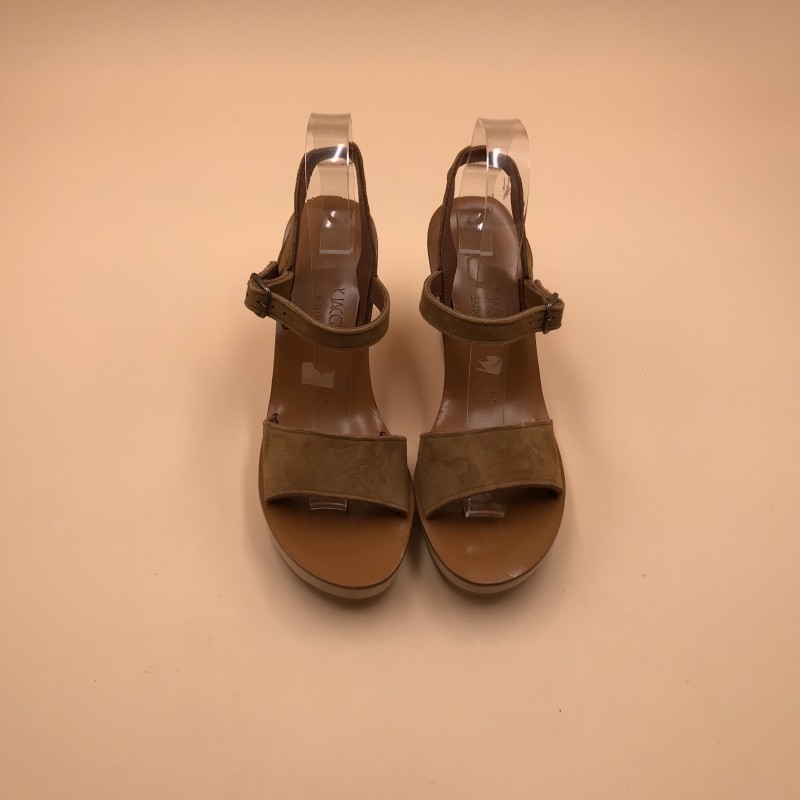 Sandales à talon K.JACQUES, modèle ORME en cuir Velours Bran, pointure 38.