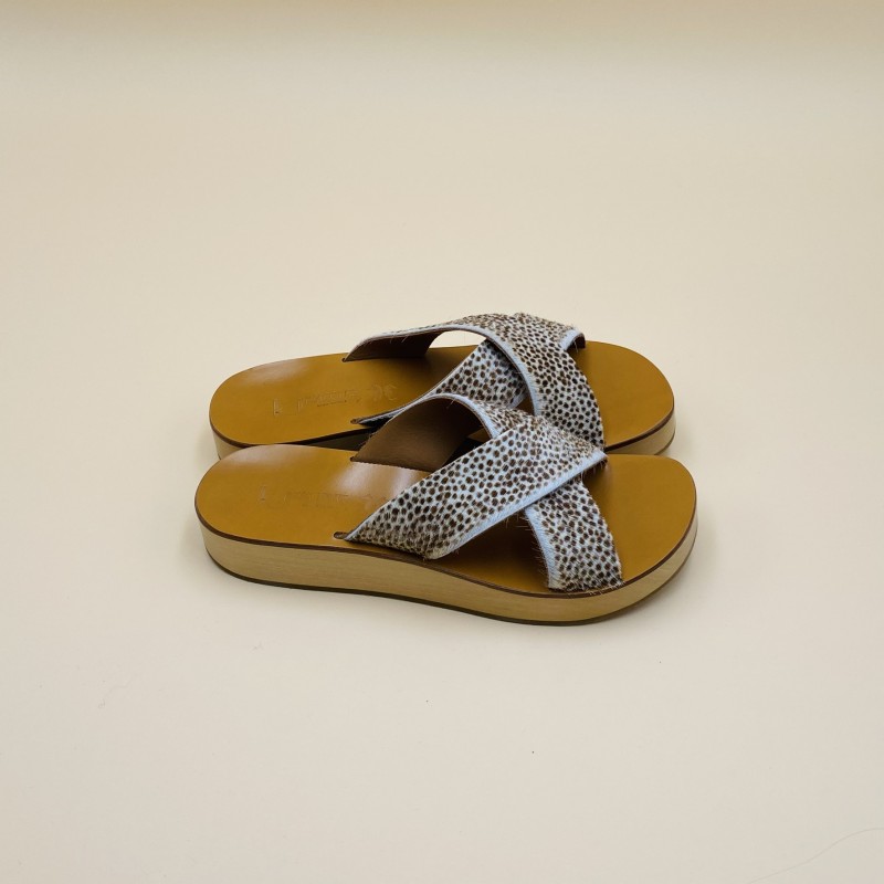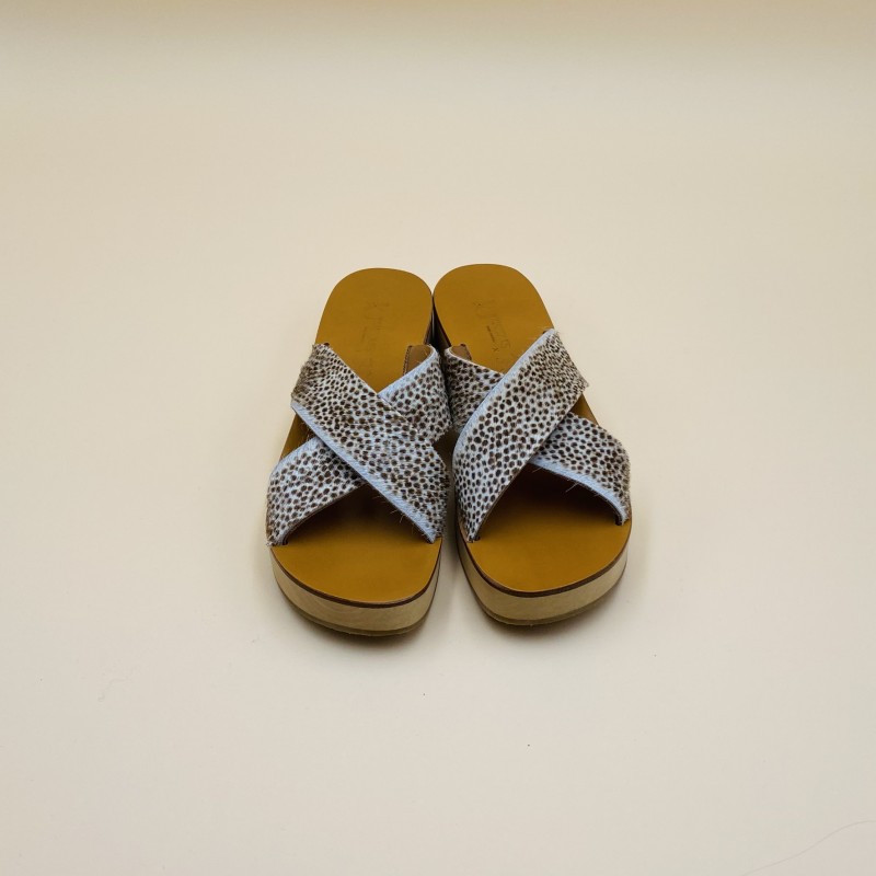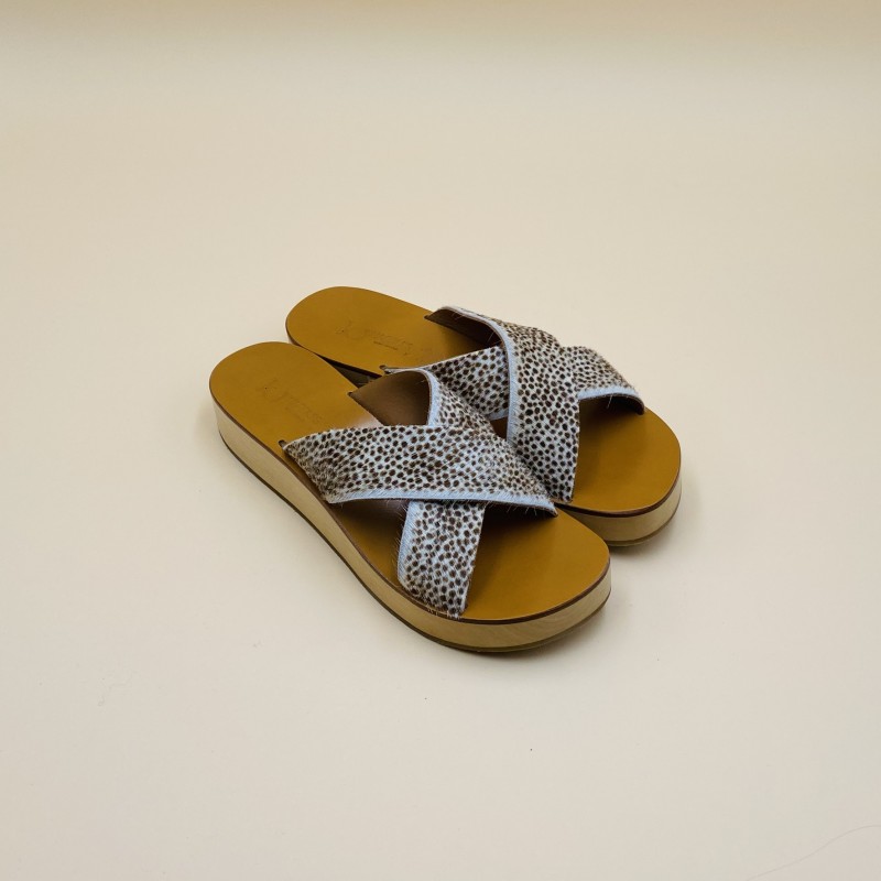 Sandales à talon K.JACQUES, modèle AULNE en cuir Imprimé Merou, pointure 39.