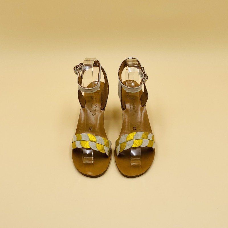 Les sandales K.Jacques sont fabriquées à la main par nos artisans à Saint-Tropez en France. Nos tropéziennes sont composées d'une semelle en cuir et d'un talon en caoutchouc hévéa naturel.
