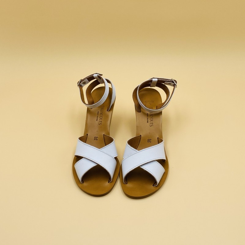 Sandales à talon K.JACQUES, modèle ALICIA en cuir Odeon Blanc, pointure 38 sur talon bottier de 7 cm