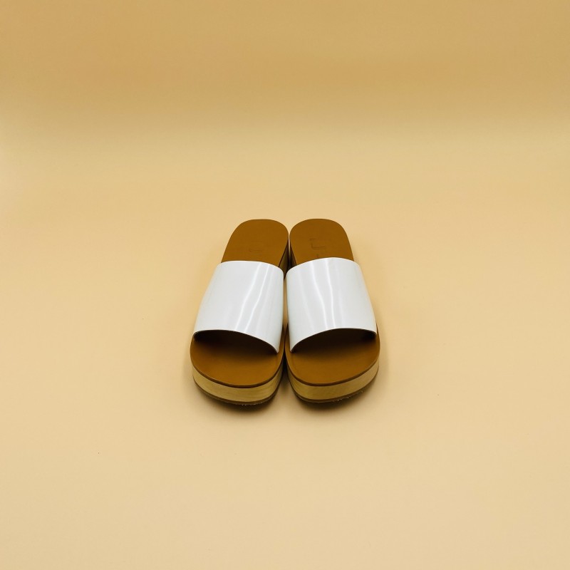 Sandales à talons K.JACQUES, modèle HOYA en cuir Vernis Blanc, pointure 39.