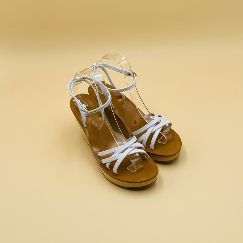 Sandales à talon K.JACQUES, modèle LILIANE en cuir Odeon Blanc, pointure 39.