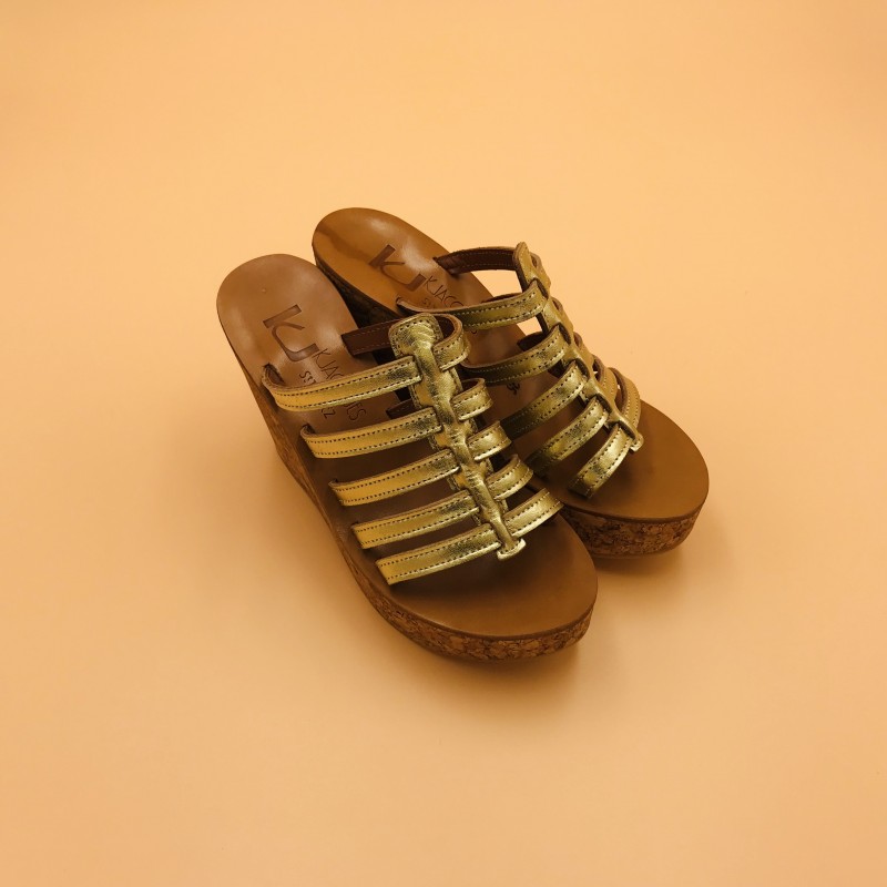 Sandales en liège K.JACQUES, modèle DROSERA en cuir Métal Doré, pointure 35.