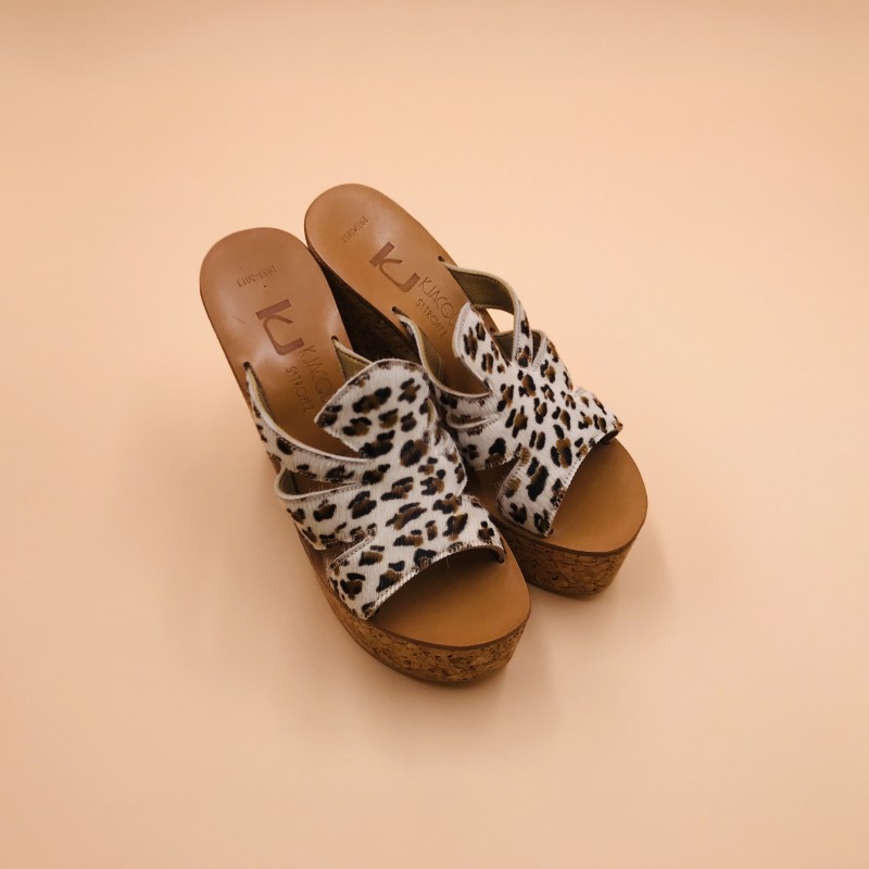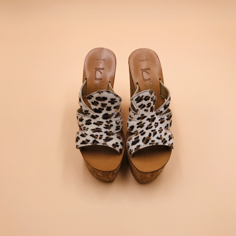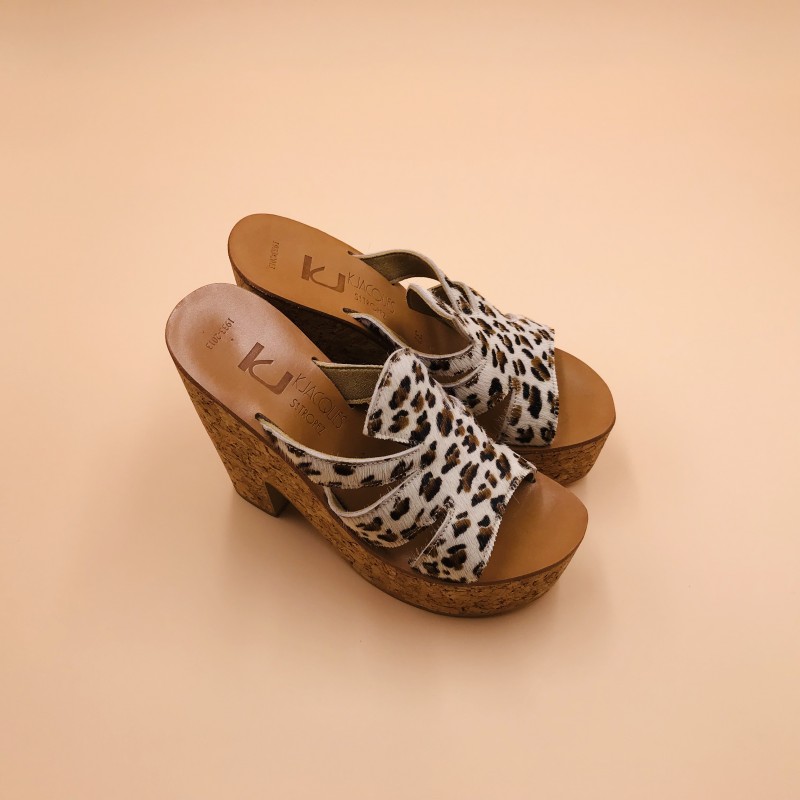 Sandales plates K.JACQUES, modèle VIVIANE en cuir Imprimé Leo-Neiges, pointure 37.