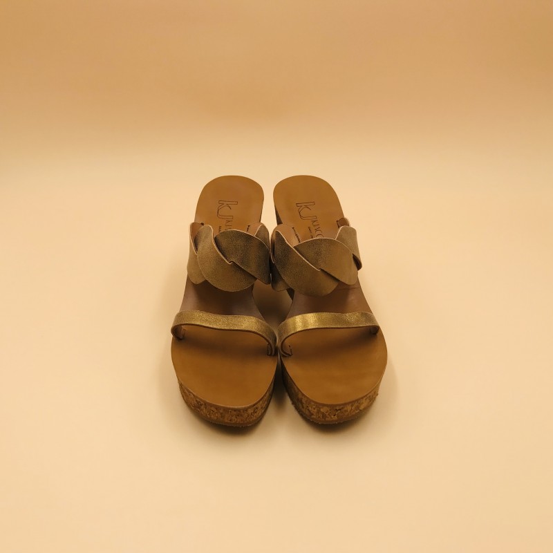 Sandales en liège K.JACQUES, modèle CASTELL en cuir Velours Métal Adzar, pointure 40.