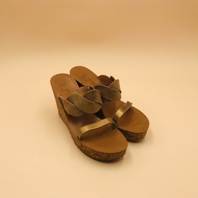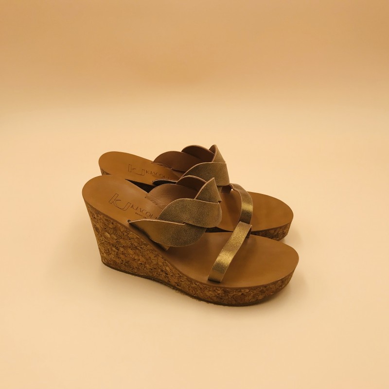 Sandales en liège K.JACQUES, modèle CASTELL en cuir Velours métal Adzar, pointure 40.