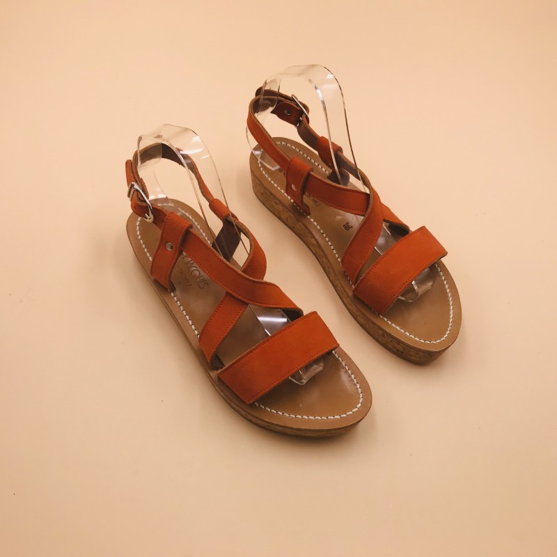 Sandales en liège K.JACQUES, modèle FONTENAY en cuir Velours Naranja, pointure 39.