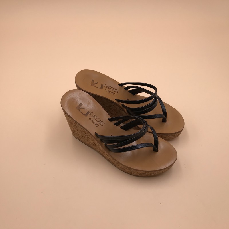 Sandales plates K.JACQUES, modèle JOSEPHA en cuir Keo Noir pointure 38.