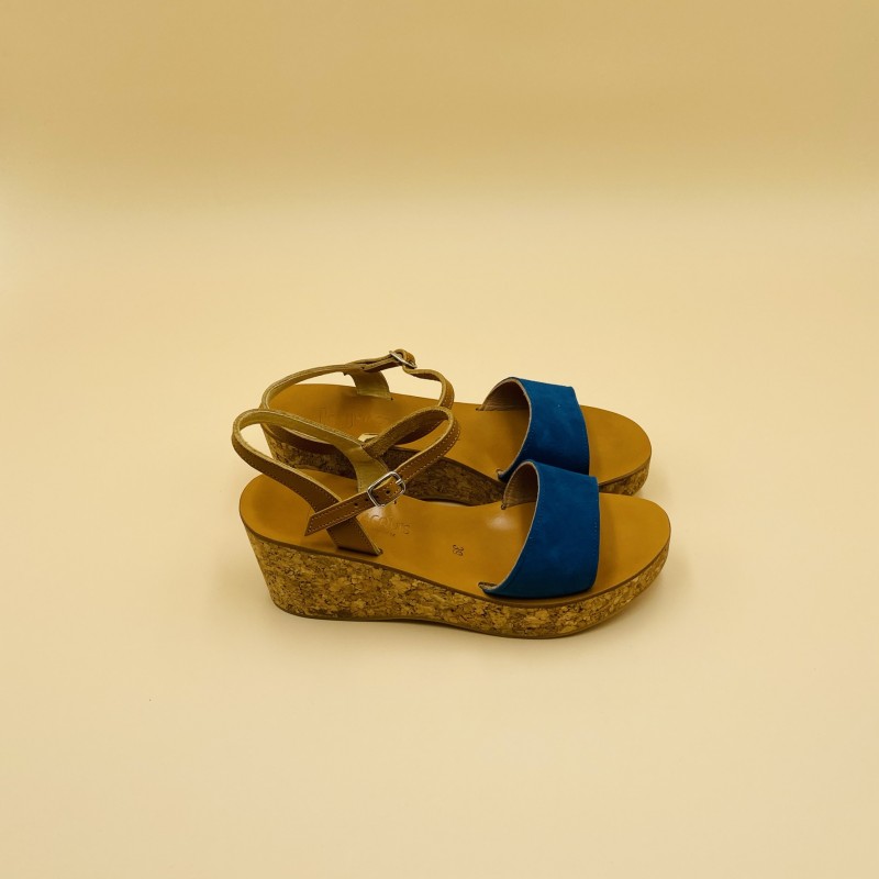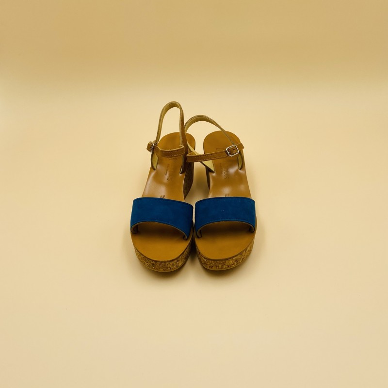Bloc liège K.JACQUES, modèle JOSY en cuirs Velours Storm et Pul Naturel , pointure 39.
