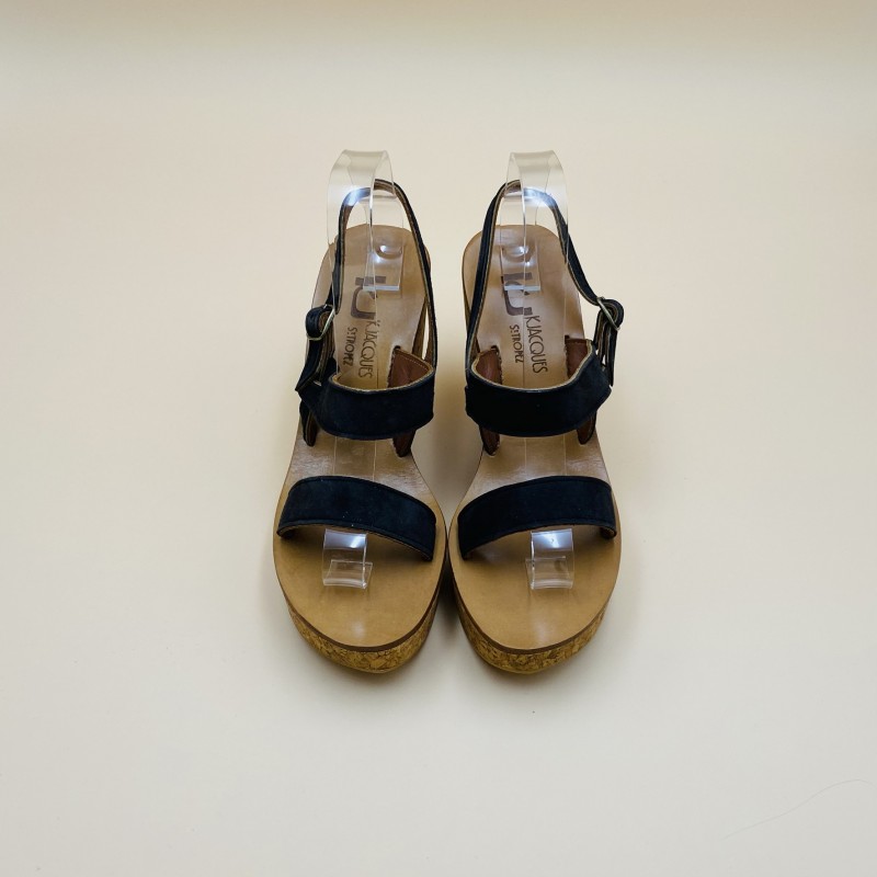 Sandales en liège K.JACQUES, modèle BORNEO en cuir Velours beluga, pointure 40.