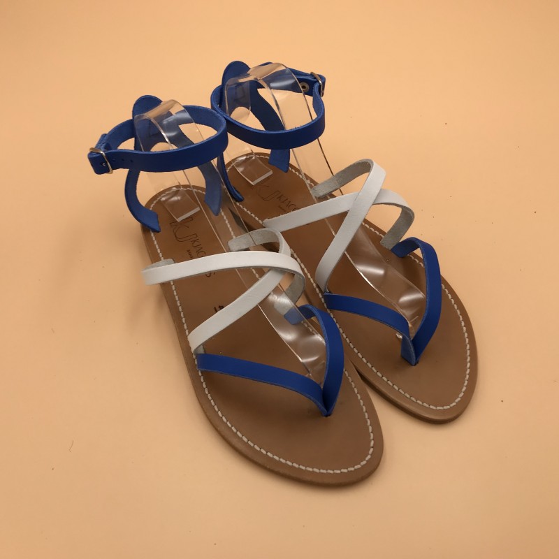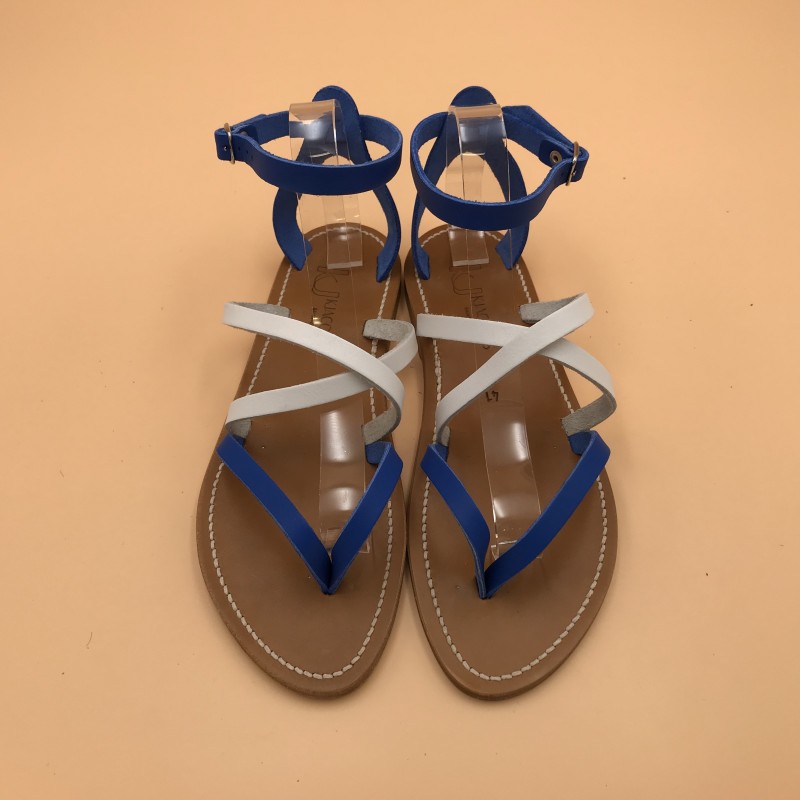 Sandales plates K.JACQUES, modèle EPICURE en cuirs pul Azur et blanc, pointure 41.
