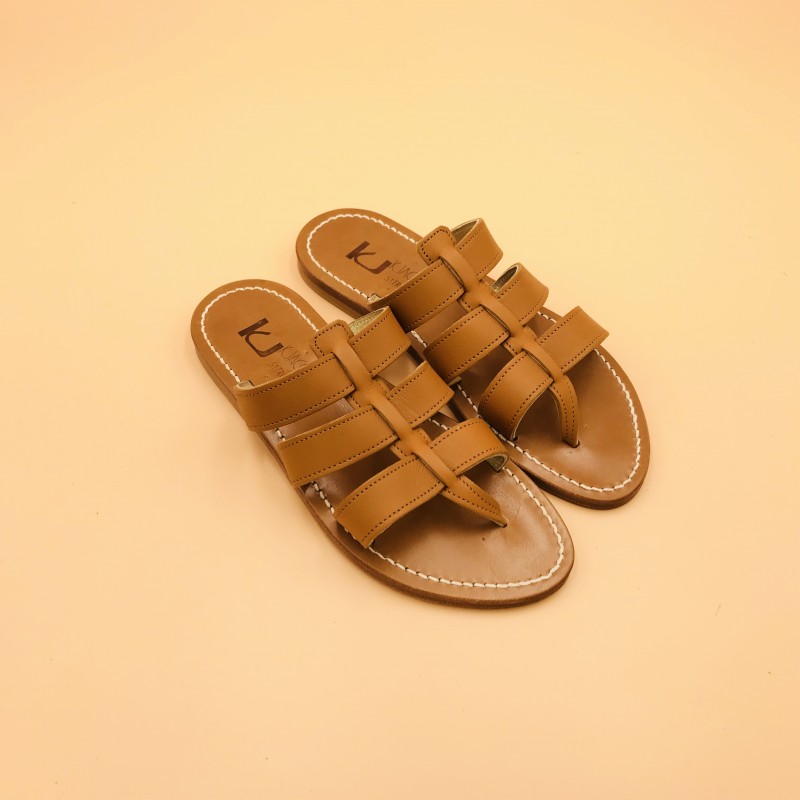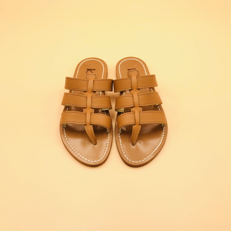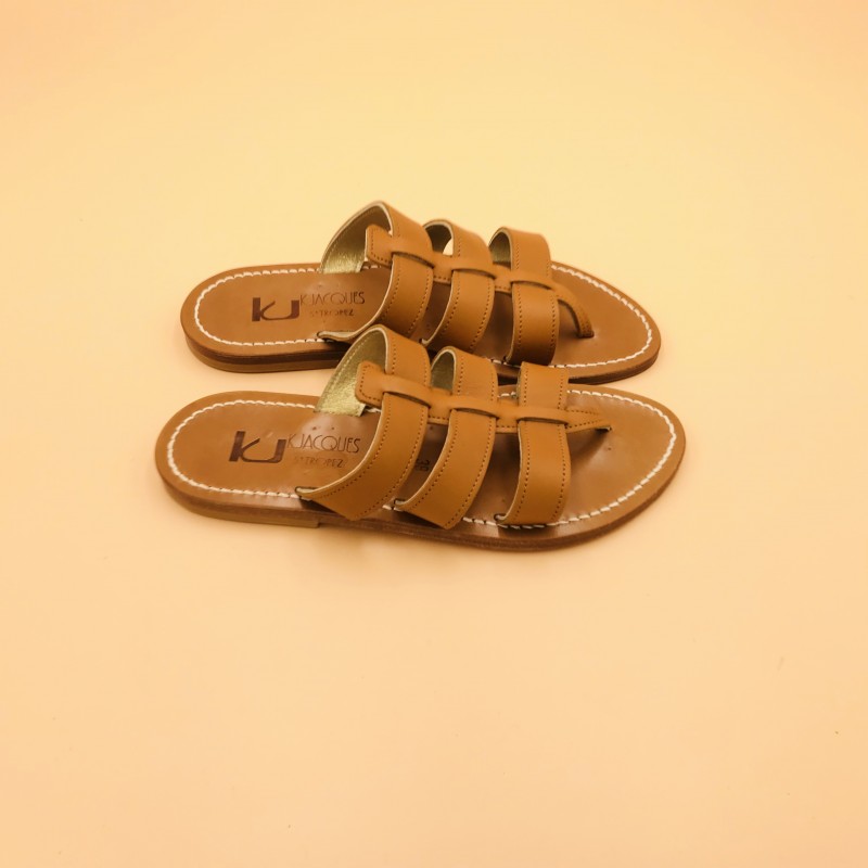 Les sandales K.Jacques sont fabriquées à la main par nos artisans à Saint-Tropez en France. Nos tropéziennes sont composées d'une semelle en cuir et d'un talon en caoutchouc hévéa naturel.