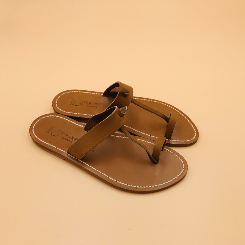 Les sandales K.Jacques sont fabriquées à la main par nos artisans à Saint-Tropez en France. Nos tropéziennes sont composées d'une semelle en cuir et d'un talon en caoutchouc hévéa naturel.