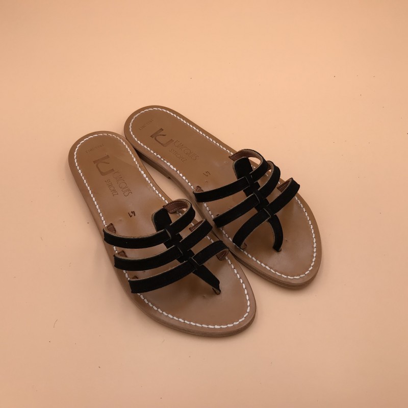 Sandales plates K.JACQUES, modèle ATLAS en cuir Velours noir , pointure 41.