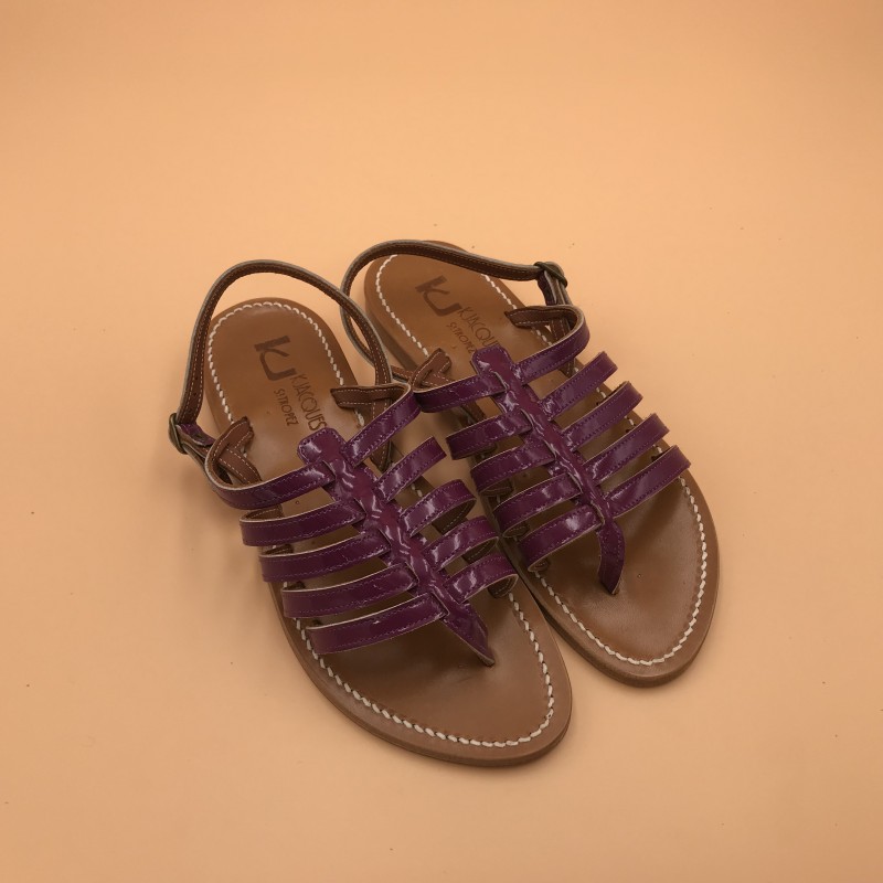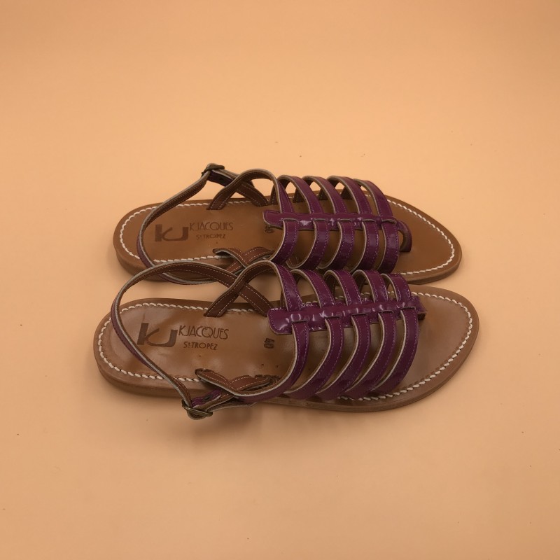 Sandales plates K.JACQUES, modèle HOMERE en cuir Vernis berenjena , pointure 40.