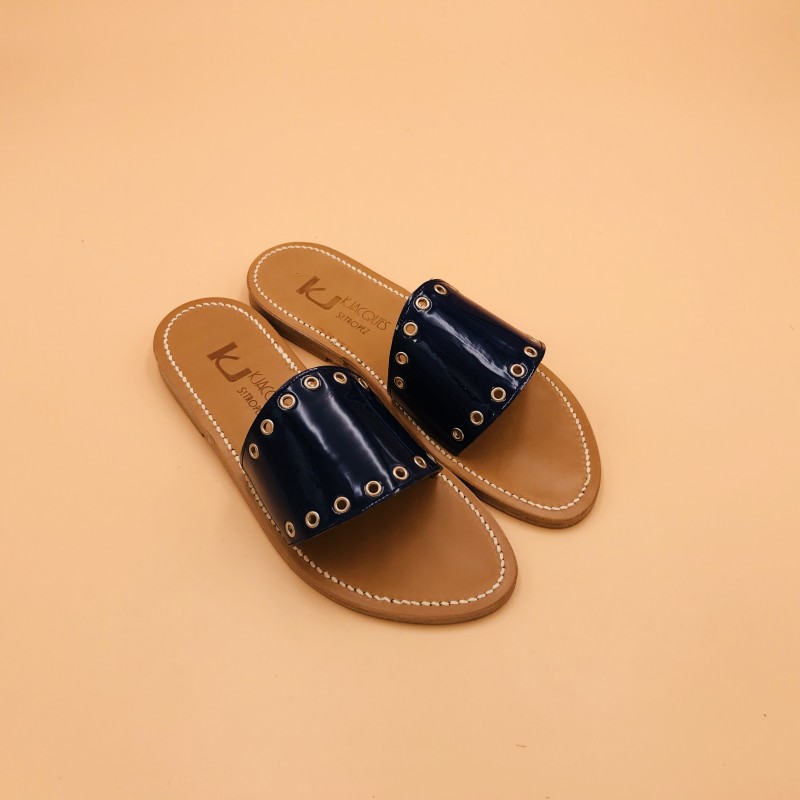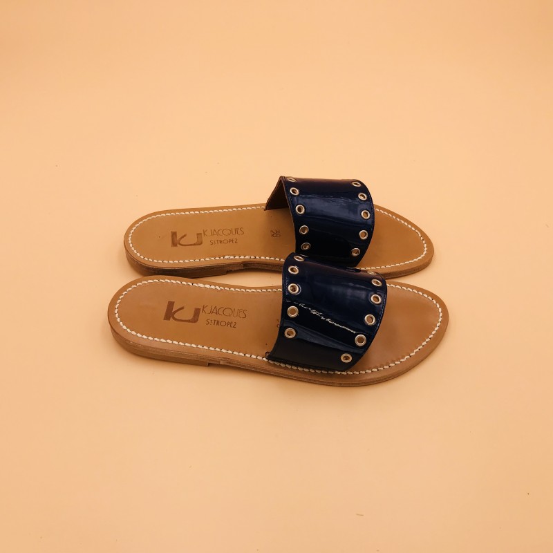 Sandales plates K.JACQUES, modèle STROMBOLI en cuir Vernis nuit , pointure 38.