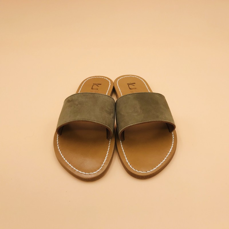 Sandales plates K.JACQUES, modèle ANACAPRI en cuir Velours Fango, pointure 42.