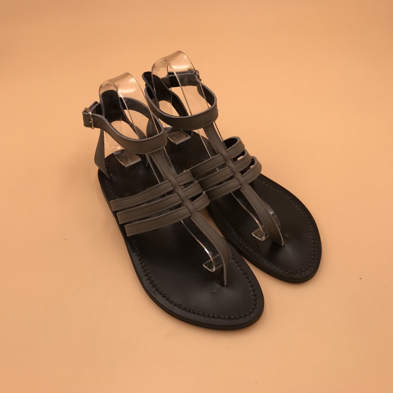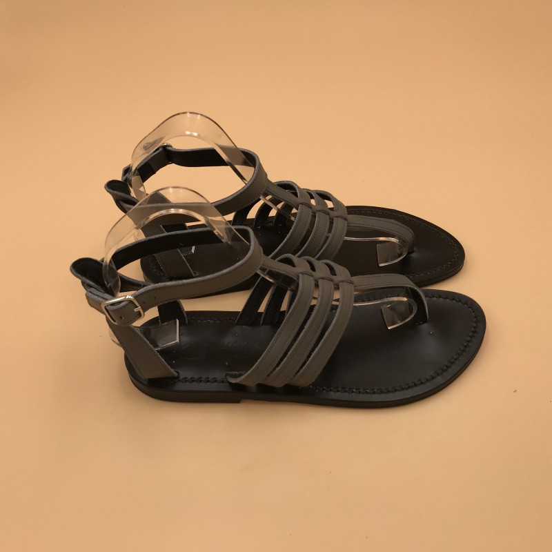 Sandales plates K.JACQUES, modèle AQUEDUC EBENE en cuir Pul Gris, pointure 38