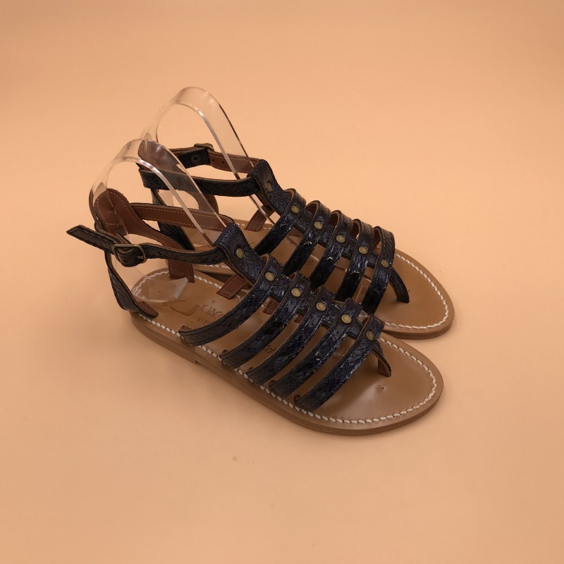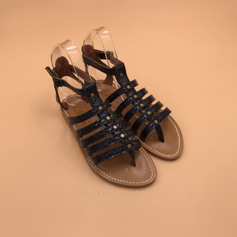 Sandales plates K.JACQUES, modèle AGOPOS en cuir Jal Marine, pointure 35.