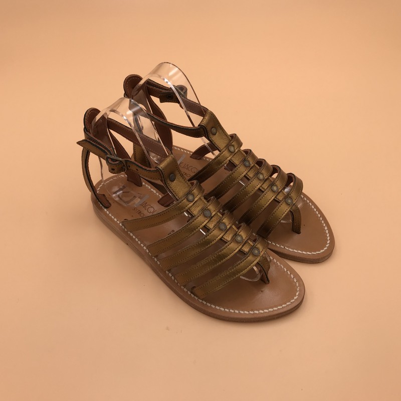 Sandales plates K.JACQUES, modèle AGOPOS en cuir Métal Bronze, pointure 37.