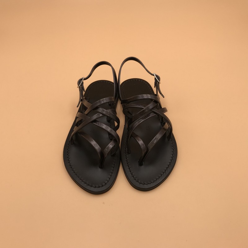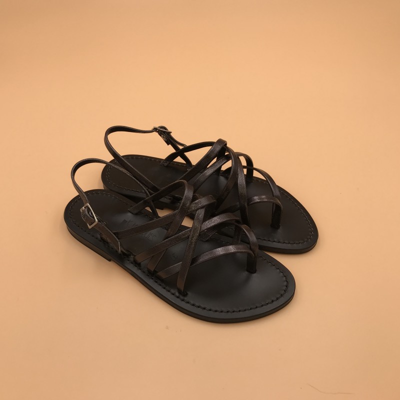Sandales plates K.JACQUES, modèle PANDORA sur semelles EBENE en cuir Metyl Piombo, pointure 37