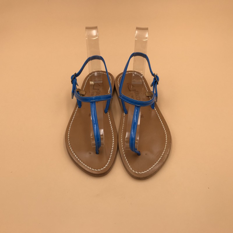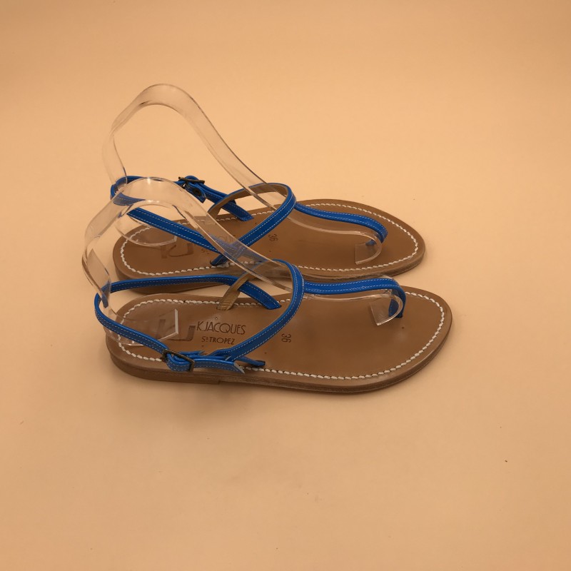 Sandales plates K.JACQUES, modèle VALERIE en cuir fluo bleu pointure 36.