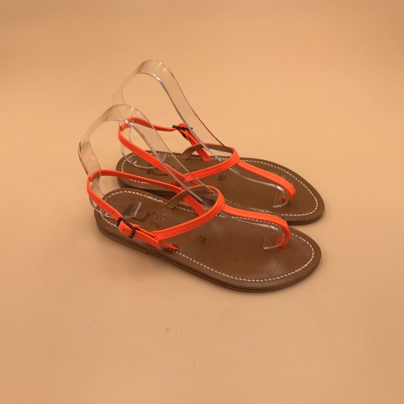 Sandales plates K.JACQUES, modèle VALERIE en cuir Fluo Orange, pointure 35.