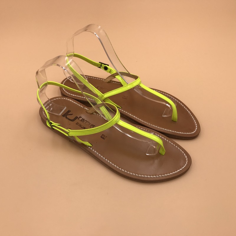 Sandales plates K.JACQUES, modèle VALERIE en cuir Fluo Jaune, pointure 41.