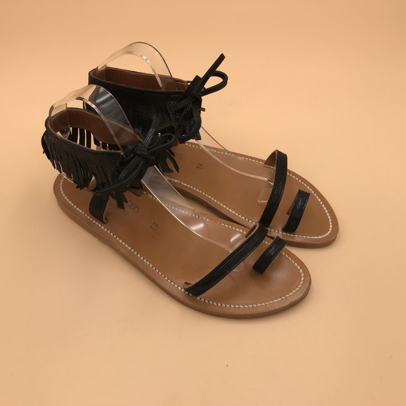 Sandales plates K.JACQUES, modèle CABESTAN en cuir Tejus Noir pointure 41.