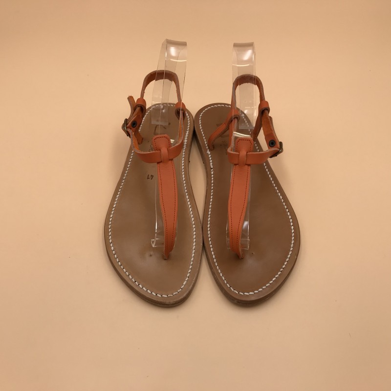 Sandales plates K.JACQUES, modèle PICON en cuir Pul Mandarine, pointure 41.