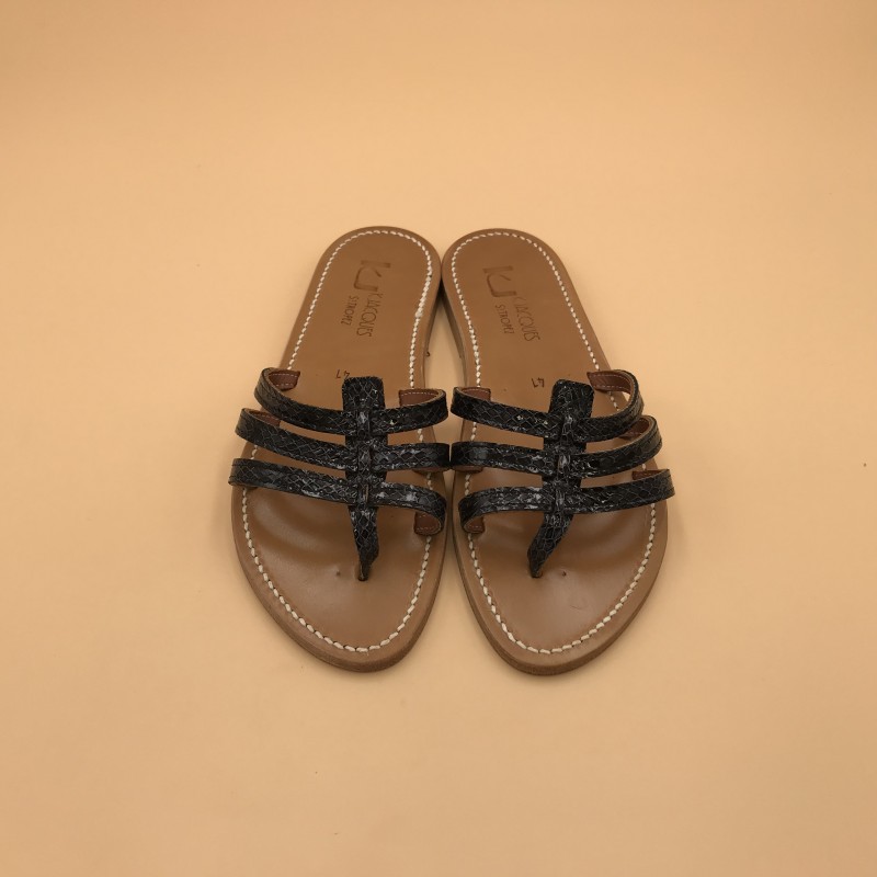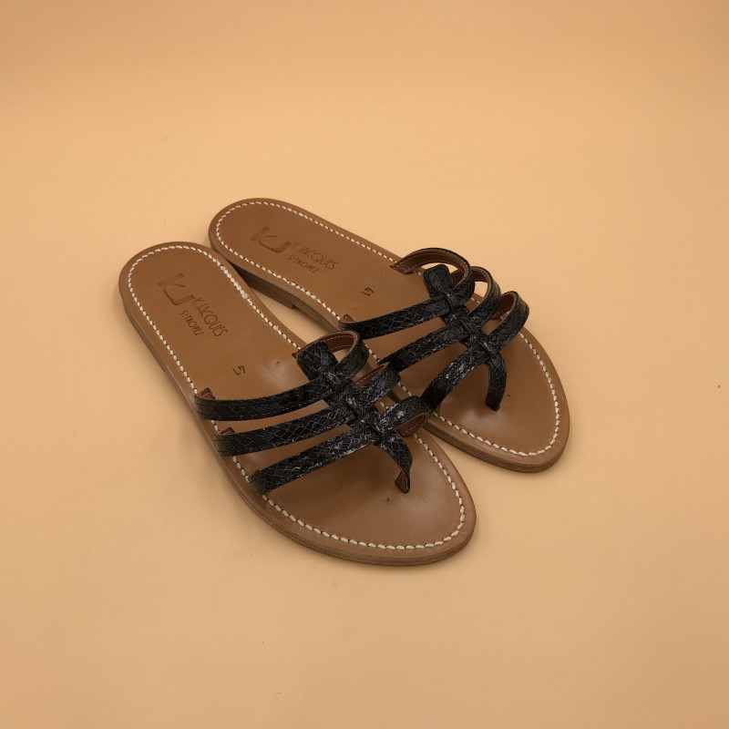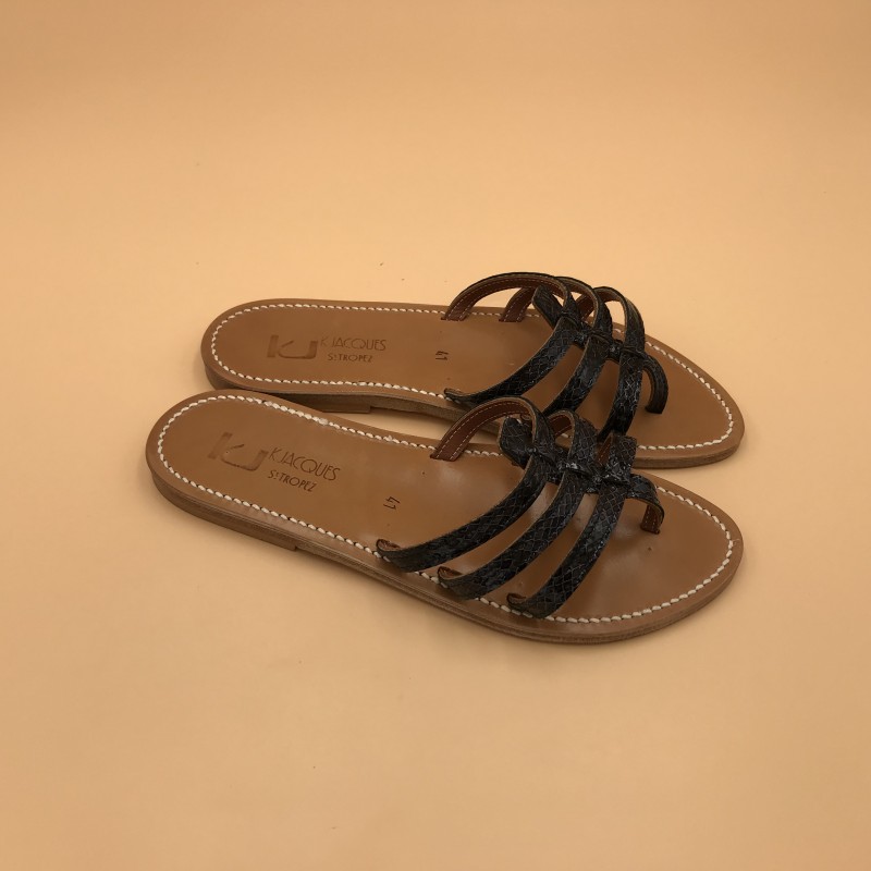 Sandales plates K.JACQUES, modèle ATLAS en cuir Jal noir , pointure 41.