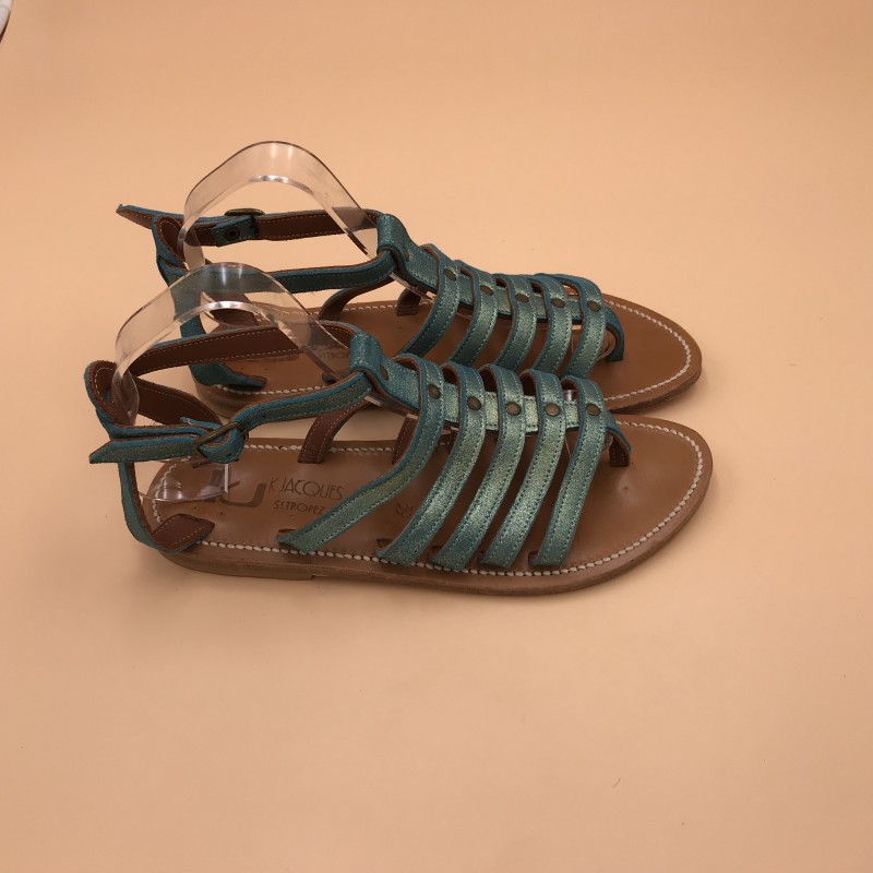 Sandales plates K.JACQUES, modèle AGOPOS en cuir Velam Ciel pointure 39.