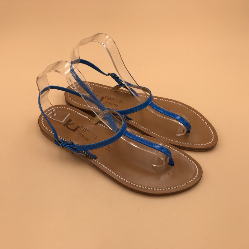 Sandales plates K.JACQUES, modèle VALERIE en cuir fluo bleu pointure 41.
