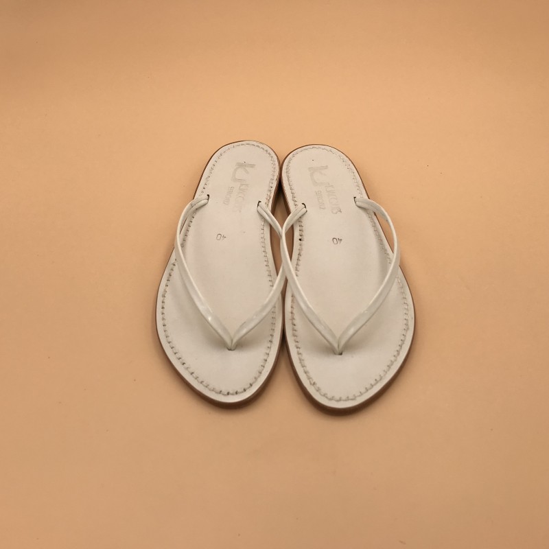 Sandales plates K.JACQUES, modèle VENISE en cuir Vernis Blanc, pointure 40.