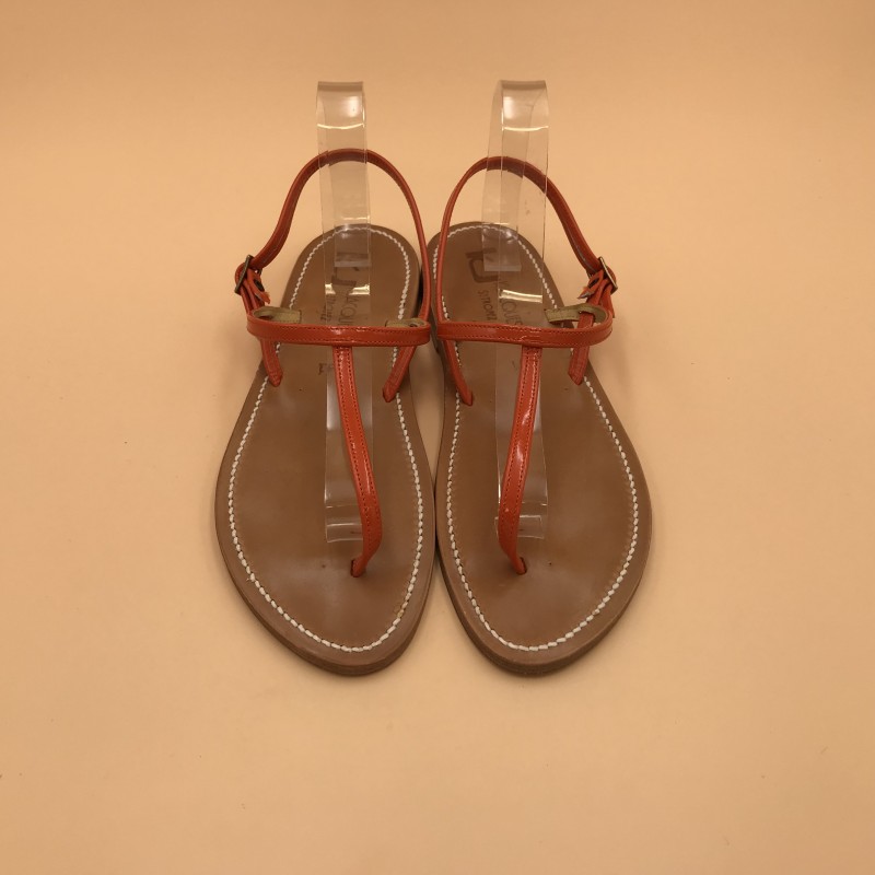 Sandales plates K.JACQUES, modèle VALERIE en cuir vernis mandarine, pointure 41.