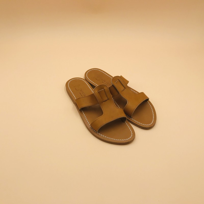 Les sandales K.Jacques sont fabriquées à la main par nos artisans à Saint-Tropez en France. Nos tropéziennes sont composées d'une semelle en cuir et d'un talon en caoutchouc hévéa naturel.
