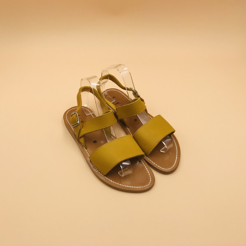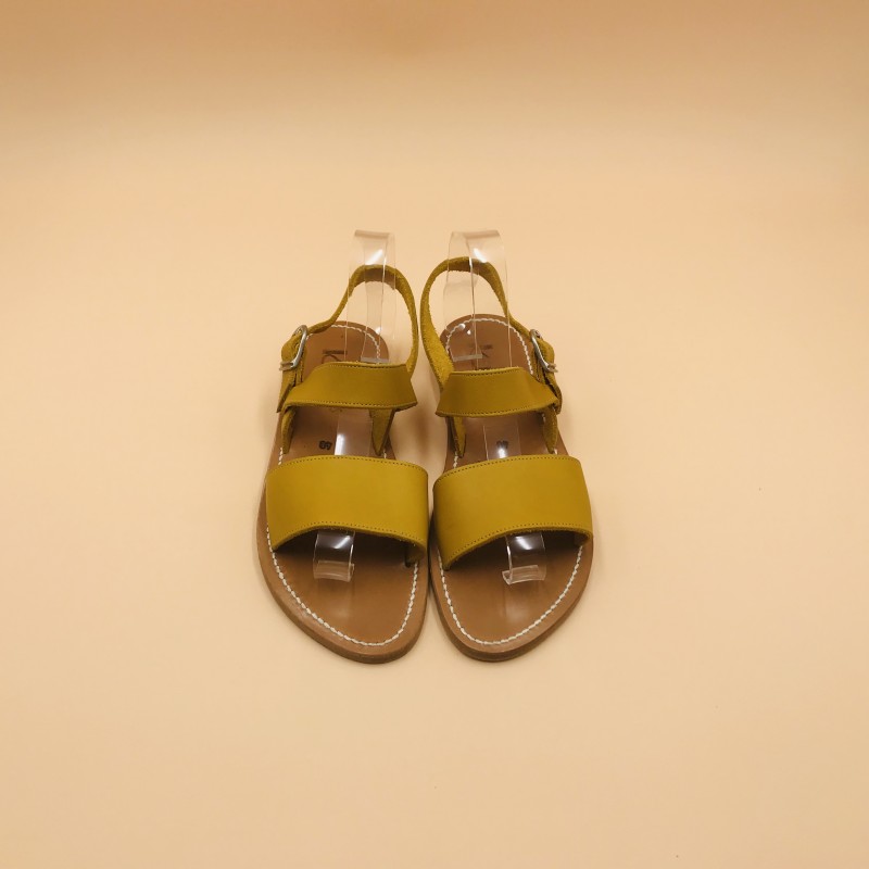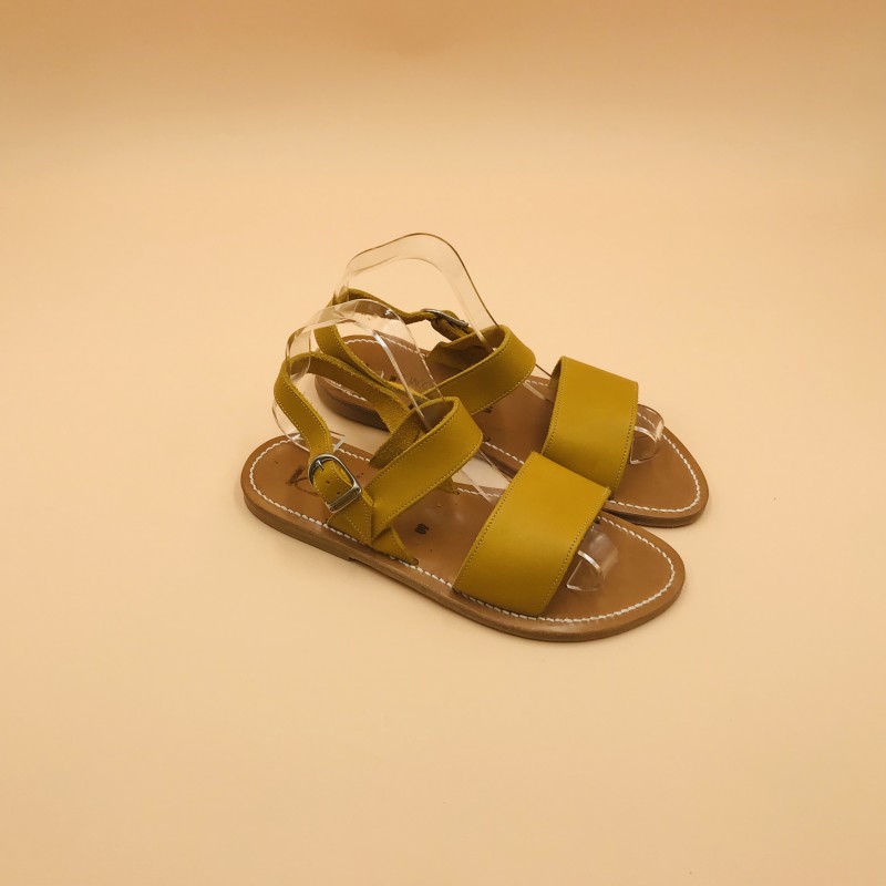 Sandales plates K.JACQUES, modèle FRANKY en cuir Pul Maïs, pointure 40.